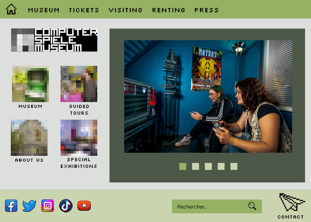 J’ai réalisé la refonte du site du Computer spiele museum en adoptant un style 8-bit, un clin d’œil aux premiers jeux vidéo qui marque instantanément l’identité du musée.